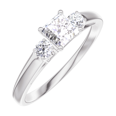 « L'ATELIER » NR. 160123Inel Aur alb 18 carate - Diamant Princess 0.3 carate - Pietre laterale Diamant