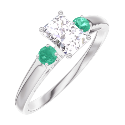 « L'ATELIER » Nº160284Inel Aur alb 9 carate - Diamant Smarald 0.3 carate - Pietre laterale Smarald
