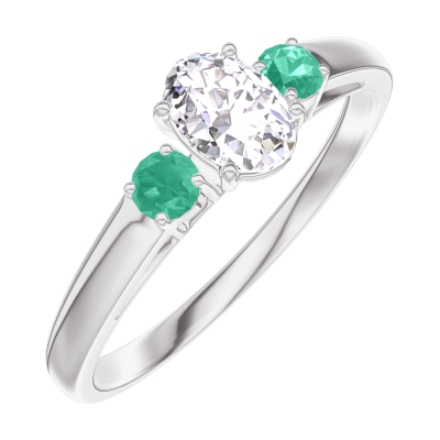 « L'ATELIER » NR. 160383Inel Aur alb 18 carate - Diamant Oval 0.3 carate - Pietre laterale Smarald 5