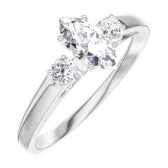Inel Aur alb 18 carate - Diamant Marquise 0.3 carate - Pietre laterale Diamant