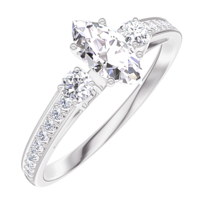 « L'ATELIER » NR. 160527Inel Aur alb 18 carate - Diamant Marquise 0.3 carate - Pietre laterale Diamant - Încrustare Diamant