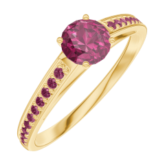 Inel Aur galben 18 carate - Rubin rotund 0.3 carate - Încrustare Rubin