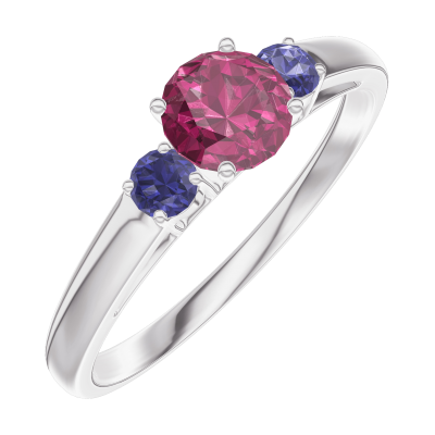 « L'ATELIER » NR. 160663Inel Aur alb 18 carate - Rubin rotund 0.3 carate - Pietre laterale Safir albastru 4.8