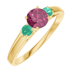 Inel Aur galben 18 carate - Rubin rotund 0.3 carate - Pietre laterale Smarald