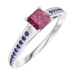 Inel Aur alb 9 carate - Rubin Princess 0.3 carate - Încrustare Safir albastru