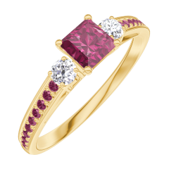 Inel Aur galben 9 carate - Rubin Princess 0.3 carate - Pietre laterale Diamant - Încrustare Rubin