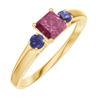 « L'ATELIER » NR. 160762Inel Aur galben 9 carate - Rubin Princess 0.3 carate - Pietre laterale Safir albastru