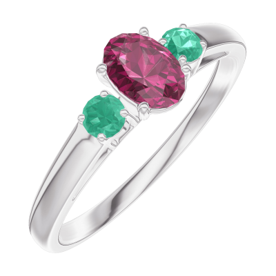 « L'ATELIER » NR. 160983Inel Aur alb 18 carate - Rubin Oval 0.3 carate - Pietre laterale Smarald 5