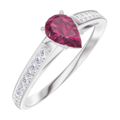 Inel Aur alb 9 carate - Rubin Pară 0.3 carate - Încrustare Diamant