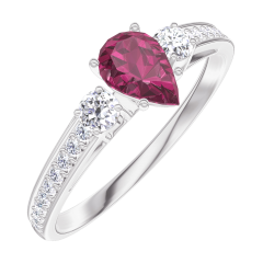 Inel Aur alb 9 carate - Rubin Pară 0.3 carate - Pietre laterale Diamant - Încrustare Diamant