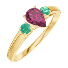 Inel Aur galben 9 carate - Rubin Pară 0.3 carate - Pietre laterale Smarald