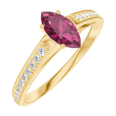 « L'ATELIER » NR. 161105Inel Aur galben 18 carate - Rubin Marquise 0.3 carate - Încrustare Diamant