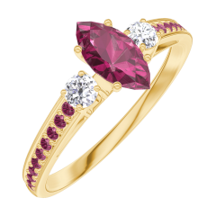 Inel Aur galben 18 carate - Rubin Marquise 0.3 carate - Pietre laterale Diamant - Încrustare Rubin