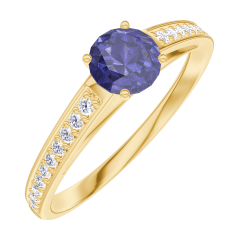 Inel Aur galben 18 carate - Safir albastru rotund 0.3 carate - Încrustare Diamant