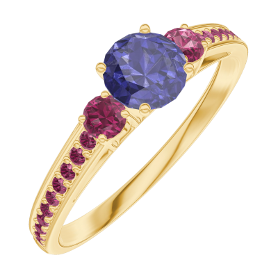 « L'ATELIER » NR. 161250Inel Aur galben 9 carate - Safir albastru rotund 0.3 carate - Pietre laterale Rubin - Încrustare Rubin 4.8