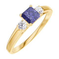 Inel Aur galben 18 carate - Safir albastru Princess 0.3 carate - Pietre laterale Diamant