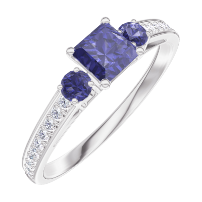 « L'ATELIER » NR. 161367Inel Aur alb 18 carate - Safir albastru Princess 0.3 carate - Pietre laterale Safir albastru - Încrustare Diamant