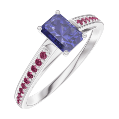 Inel Aur alb 18 carate - Safir albastru Smarald 0.3 carate - Încrustare Rubin