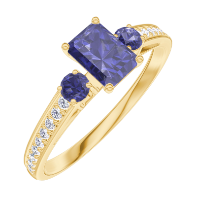 « L'ATELIER » NR. 161466Inel Aur galben 9 carate - Safir albastru Smarald 0.3 carate - Pietre laterale Safir albastru - Încrustare Diamant
