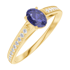 Inel Aur galben 9 carate - Safir albastru Oval 0.3 carate - Încrustare Diamant