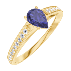 Inel Aur galben 9 carate - Safir albastru Pară 0.3 carate - Încrustare Diamant