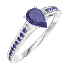 Inel Aur alb 18 carate - Safir albastru Pară 0.3 carate - Încrustare Safir albastru