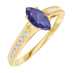 Inel Aur galben 9 carate - Safir albastru Marquise 0.3 carate - Încrustare Diamant
