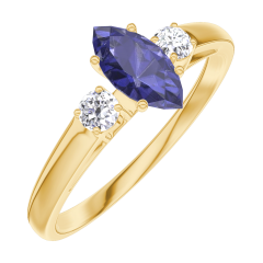 Inel Aur galben 18 carate - Safir albastru Marquise 0.3 carate - Pietre laterale Diamant