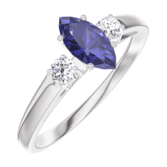 Inel Aur alb 18 carate - Safir albastru Marquise 0.3 carate - Pietre laterale Diamant