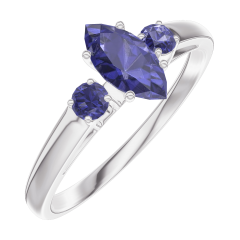 Inel Aur alb 9 carate - Safir albastru Marquise 0.3 carate - Pietre laterale Safir albastru