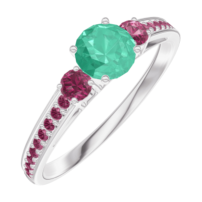 « L'ATELIER » NR. 161851Inel Aur alb 18 carate - Smarald rotund 0.3 carate - Pietre laterale Rubin - Încrustare Rubin 4.8
