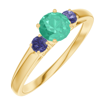 « L'ATELIER » NR. 161861Inel Aur galben 18 carate - Smarald rotund 0.3 carate - Pietre laterale Safir albastru 4.8 (36)