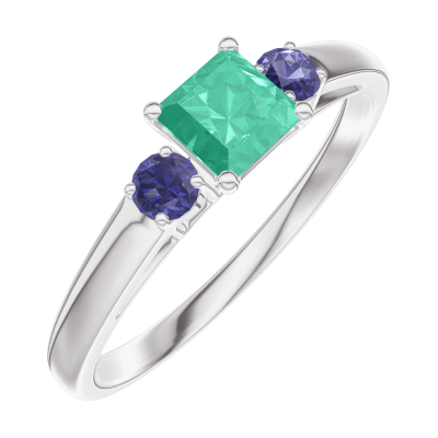« L'ATELIER » NR. 161964Inel Aur alb 9 carate - Smarald Princess 0.3 carate - Pietre laterale Safir albastru
