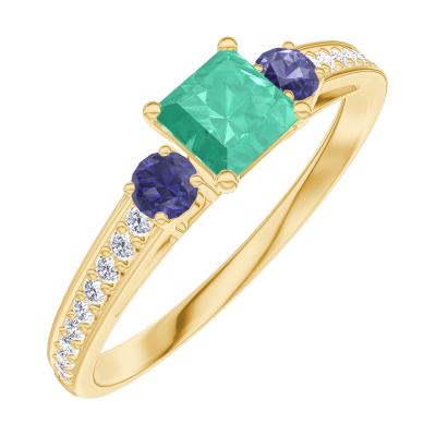 « L'ATELIER » NR. 161966Inel Aur galben 9 carate - Smarald Princess 0.3 carate - Pietre laterale Safir albastru - Încrustare Diamant