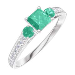 Inel Aur alb 9 carate - Smarald Princess 0.3 carate - Pietre laterale Smarald - Încrustare Diamant