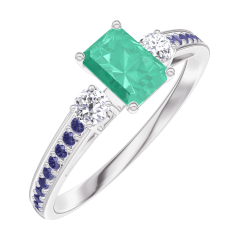 Inel Aur alb 18 carate - Smarald Smarald 0.3 carate - Pietre laterale Diamant - Încrustare Safir albastru