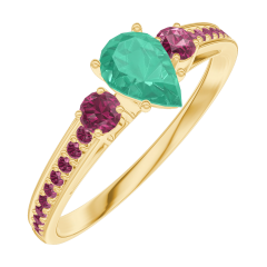 Inel Aur galben 18 carate - Smarald Pară 0.3 carate - Pietre laterale Rubin - Încrustare Rubin