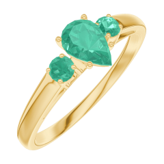Inel Aur galben 18 carate - Smarald Pară 0.3 carate - Pietre laterale Smarald