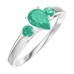 Inel Aur alb 9 carate - Smarald Pară 0.3 carate - Pietre laterale Smarald