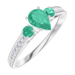 Inel Aur alb 18 carate - Smarald Pară 0.3 carate - Pietre laterale Smarald - Încrustare Diamant