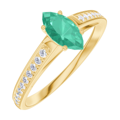 Inel Aur galben 18 carate - Smarald Marquise 0.3 carate - Încrustare Diamant