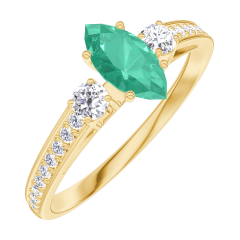 « L'ATELIER » NR. 162326Inel Aur galben 9 carate - Smarald Marquise 0.3 carate - Pietre laterale Diamant - Încrustare Diamant