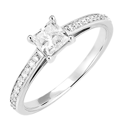 Inel Aur alb 9 carate - Diamant Princess 0.5 carate - Încrustare Diamant