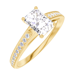Inel Aur galben 9 carate - Diamant Smarald 0.5 carate - Încrustare Diamant