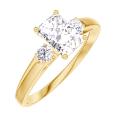 Inel Aur galben 9 carate - Diamant Smarald 0.5 carate - Pietre laterale Diamant