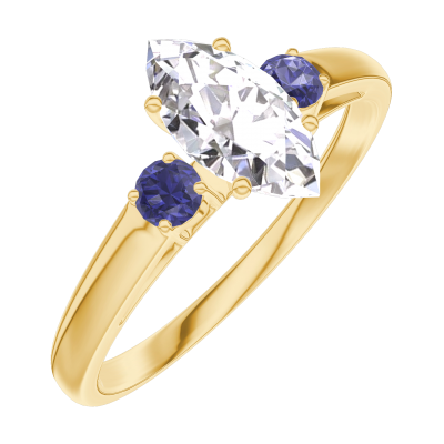 « L'ATELIER » NR. 162962Inel Aur galben 9 carate - Diamant Marquise 0.5 carate - Pietre laterale Safir albastru