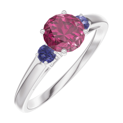 « L'ATELIER » NR. 163064Inel Aur alb 9 carate - Rubin rotund 0.5 carate - Pietre laterale Safir albastru 4.9