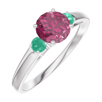 « L'ATELIER » NR. 163083Inel Aur alb 18 carate - Rubin rotund 0.5 carate - Pietre laterale Smarald 4.9