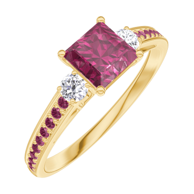 « L'ATELIER » NR. 163130Inel Aur galben 9 carate - Rubin Princess 0.5 carate - Pietre laterale Diamant - Încrustare Rubin