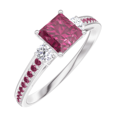 Inel Aur alb 18 carate - Rubin Princess 0.5 carate - Pietre laterale Diamant - Încrustare Rubin